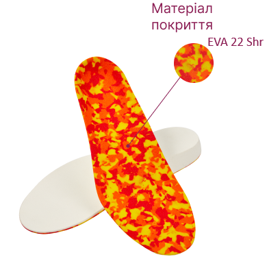 Устілки Vitamed COMFORT MULTICOLOR мають суцільну анатомічну основу, виготовлену з ортопедичного EVA-матеріалу, що надає їм амортизаційні властивості, легкість, еластичність, водонепроникність і гігієнічність. Жорсткість устілки 35 Sh забезпечує оптимальний комфорт і помірну підтримку стопи. М'який 22 Sh і тонкий 2 мм ортопедичний матеріал завдяки покриттю EVA 22 Shr своїм еластичним властивостям додатково амортизує й пом'якшує відчуття під час використання устілки.